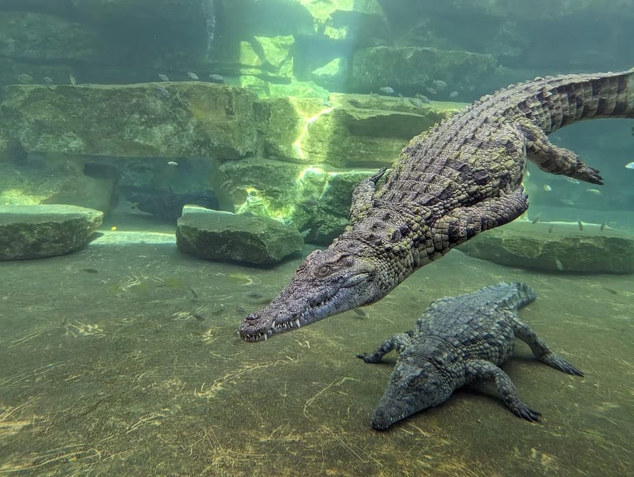 Venture into the African lake–themed aquarium to observe crocodiles from below the waterline. Witness their stealthy movements and amphibious abilities in crystal-clear tanks — a vantage point few ever see.