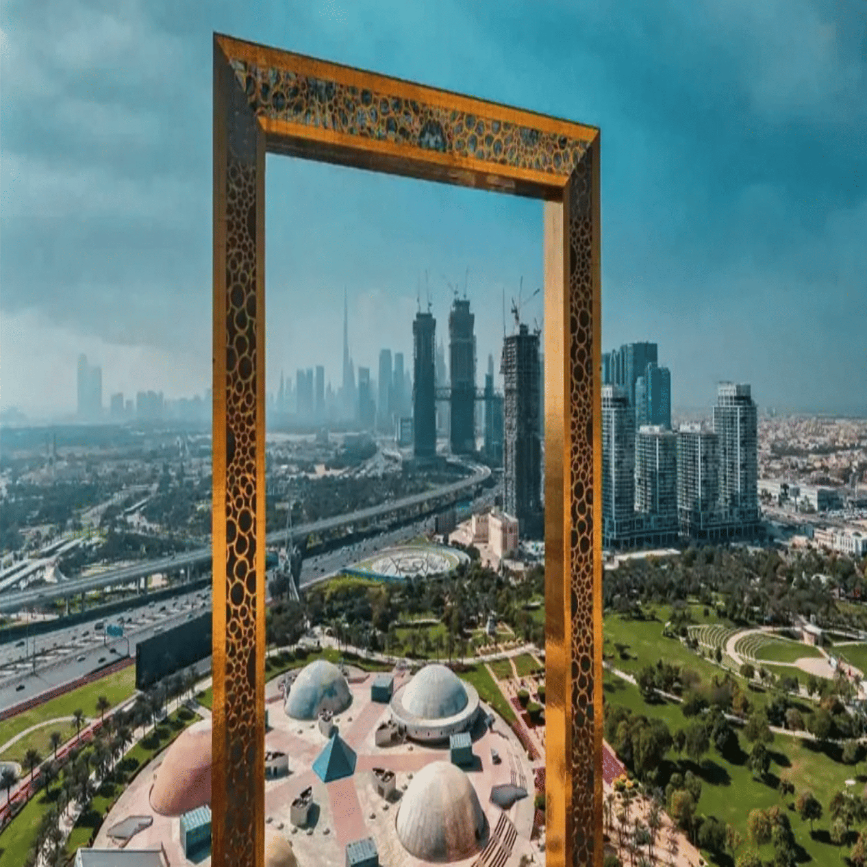 Discover Dubai Frame, the iconic landmark offering breathtaking panoramic views of both old and modern Dubai. Experience a unique journey through time with stunning cityscapes from the top.