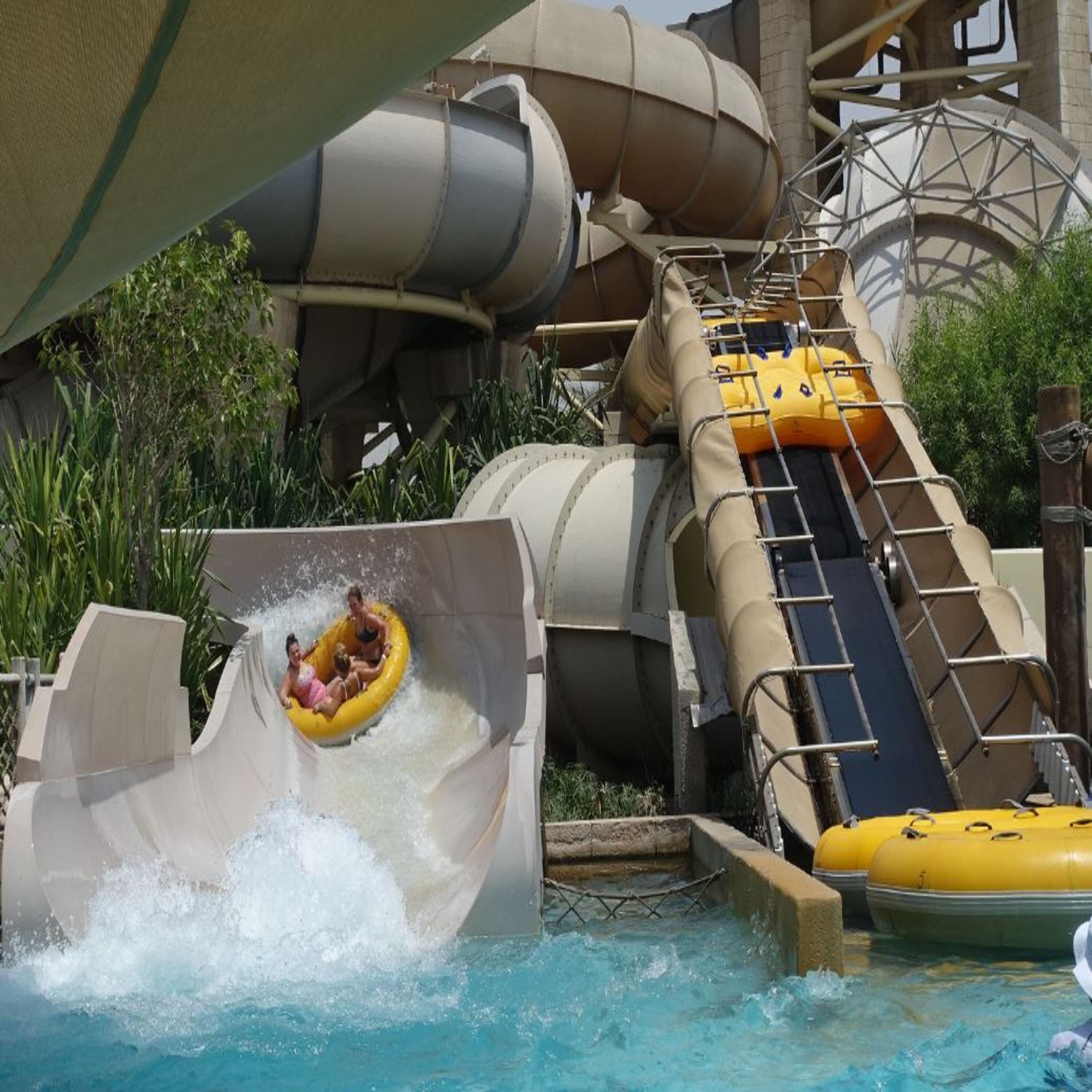 Ever wondered what it’s like to surf real waves and plunge down towering slides with the Burj Al Arab as your backdrop? At Wild Wadi Waterpark, experience over 30 water rides and attractions, from heart-stopping speed slides to family-friendly splash zones, all set within a vividly themed Arabian oasis.